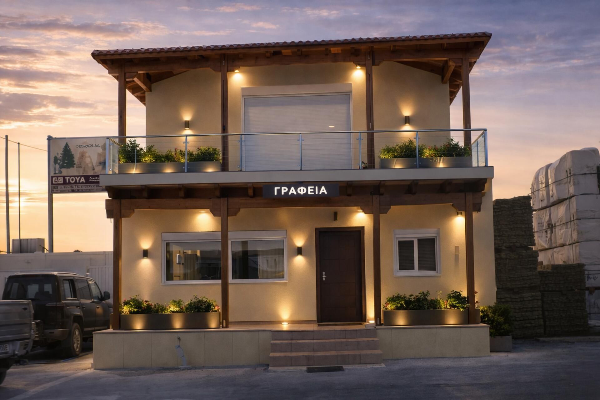 Οι παραπάνω φωτογραφίες αφορούν προκατασκευασμένη κατοικία, η οποία κατασκευάστηκε στο Μαρκόπουλο Αττικής, από την εταιρεία ΄΄ΜΑΡΑΓΓΑΣ ΠΡΟΚΑΤΑΣΚΕΥΑΣΜΕΝΑ ΣΠΙΤΙΑ ΄΄ προκειμένου να στεγαστούν τα γραφεία μιας εταιρείας εμπορίου ξυλείας.